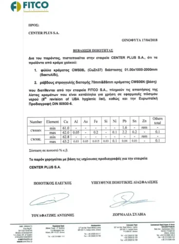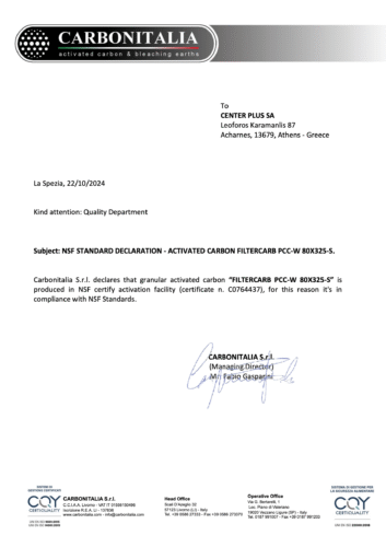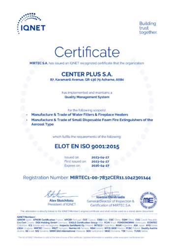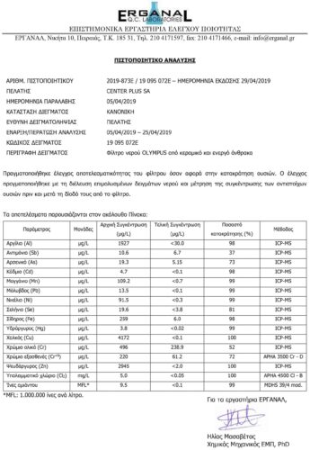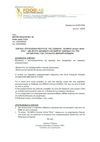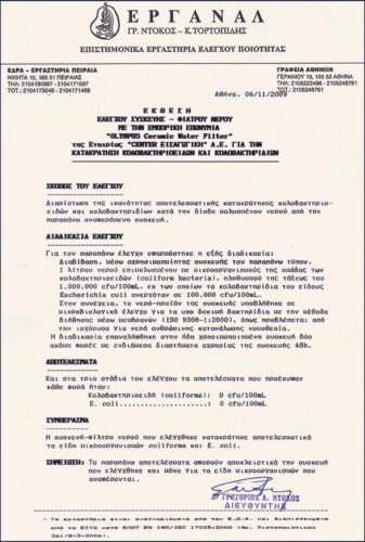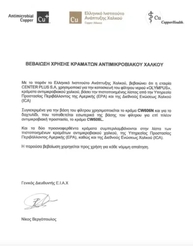 Τα φίλτρα νερού Olympus αλλά και όλα τα υλικά που χρησιμοποιούνται για την κατασκευή τους είναι ελεγμένα και πιστοποιημένα. Erganal Χημικές Αναλύσεις Φυτικός Ενεργός Άνθρακας ISO CERTIFIED Erganal Βεβαίωση καταλληλότητας κραμάτων χαλκού για πόσιμο νερό Quality Management System Foodlab Βεβαίωση χρήσης κραμάτων αντιμικροβιακού χαλκού Certificate of Membership